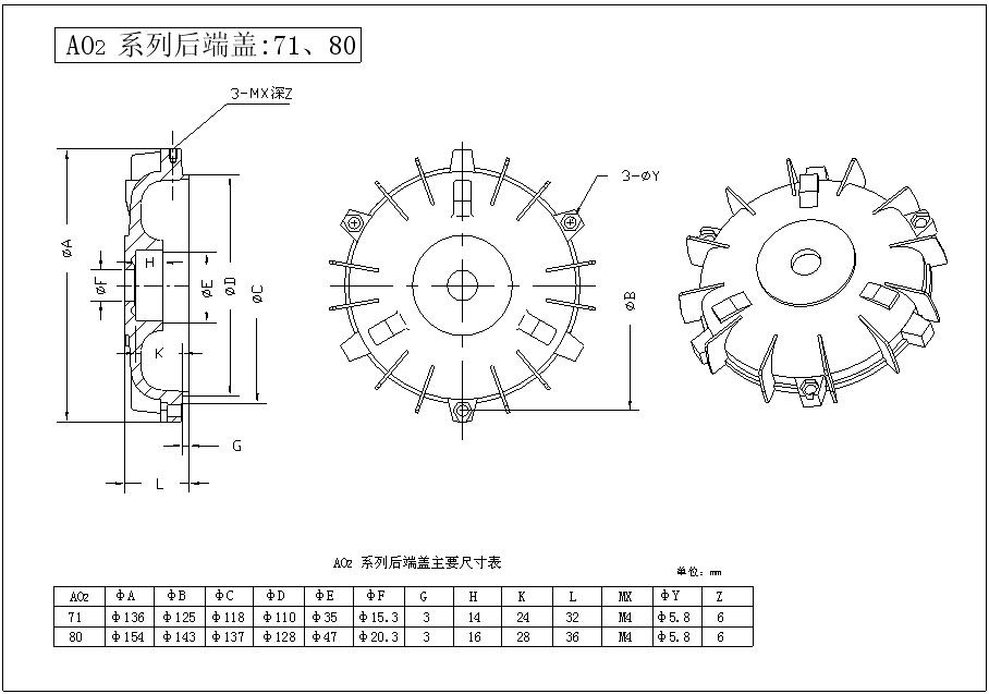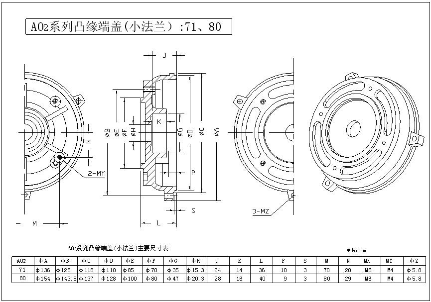 AO2系列凸緣端蓋(小法蘭):71、80 |