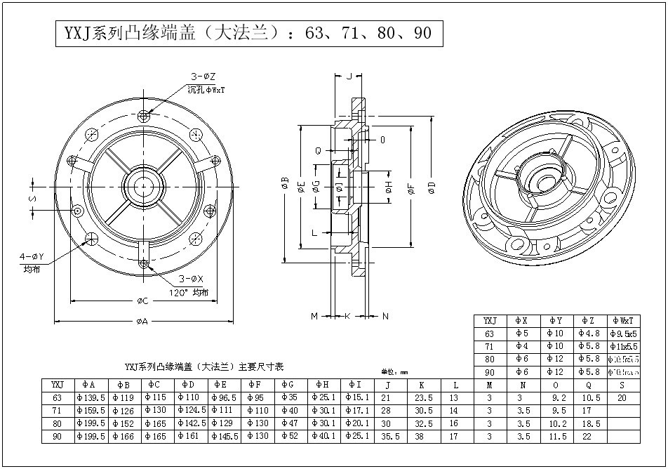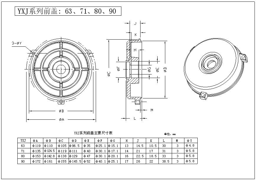 YXJ系列凸緣端蓋(大法蘭):63、71、80、90 |