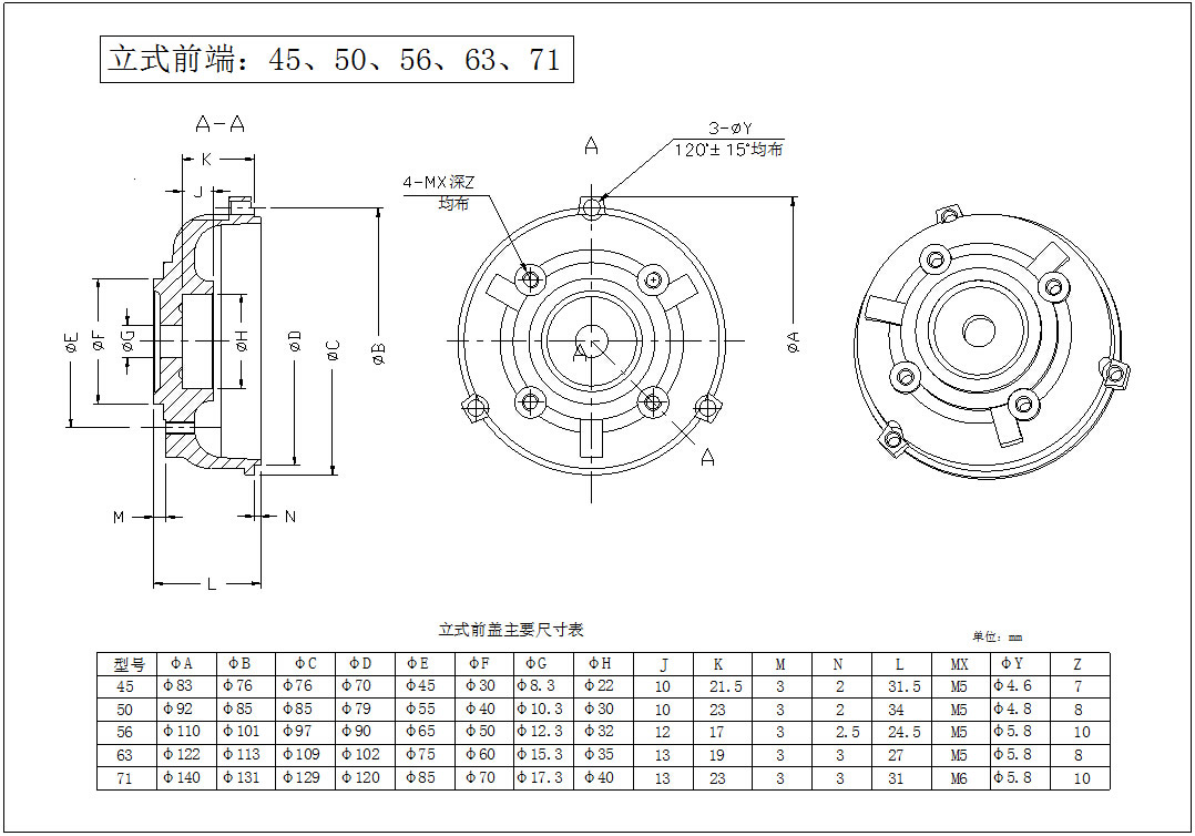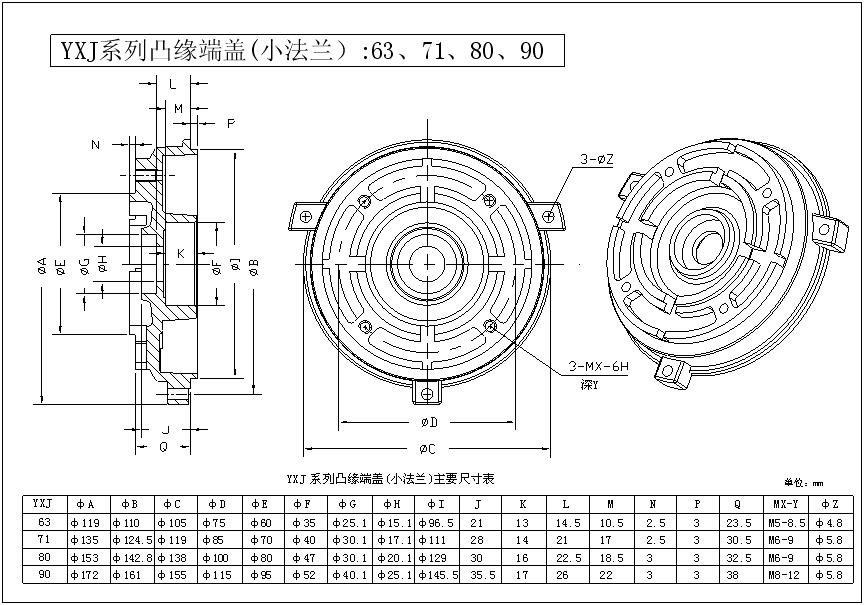YXJ系列凸緣端蓋(小法蘭):63、71、80、90 |