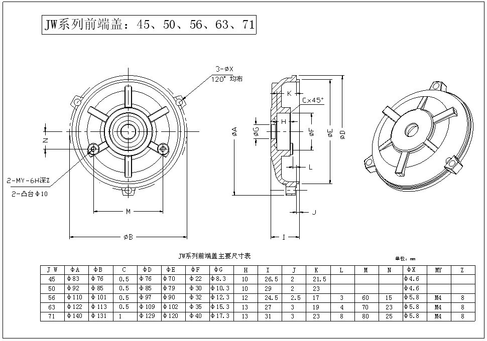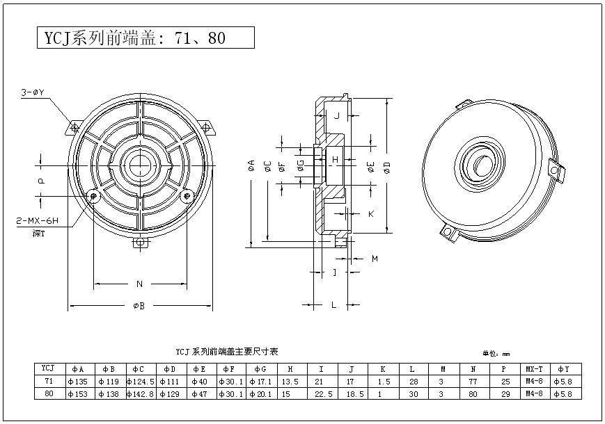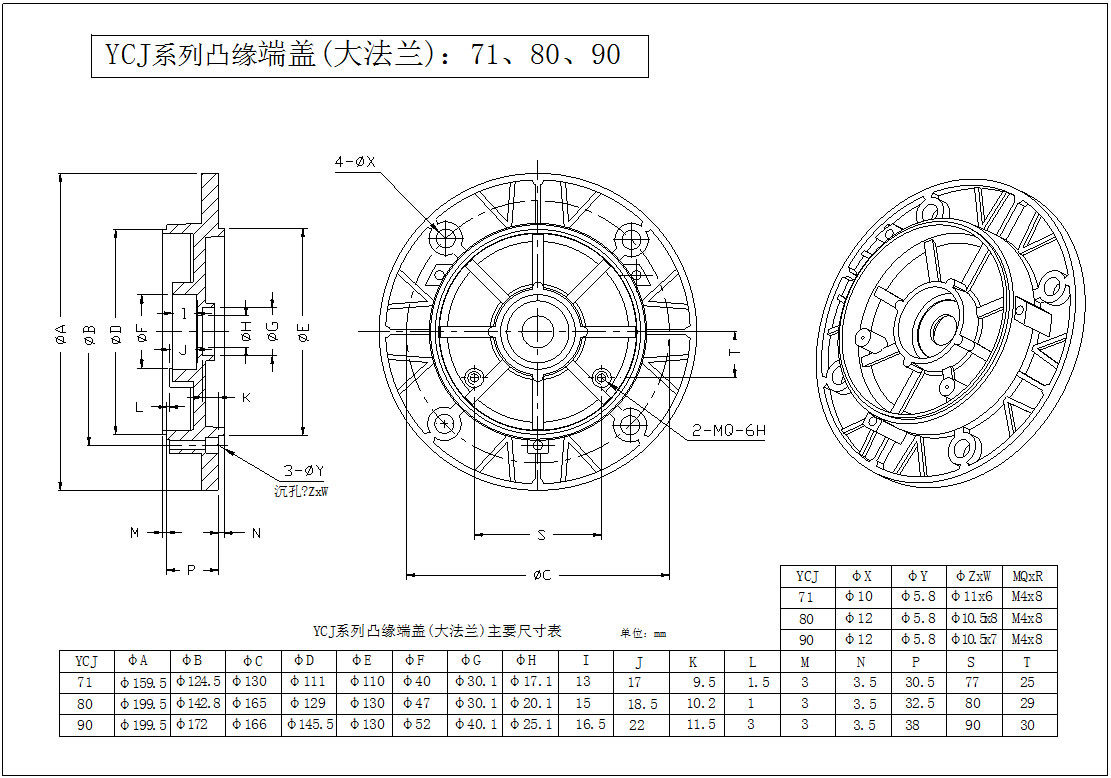 YCJ系列凸緣端蓋(大法蘭):71、80、90 |