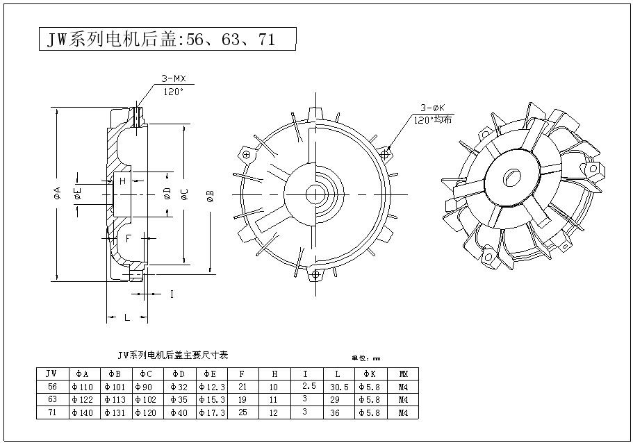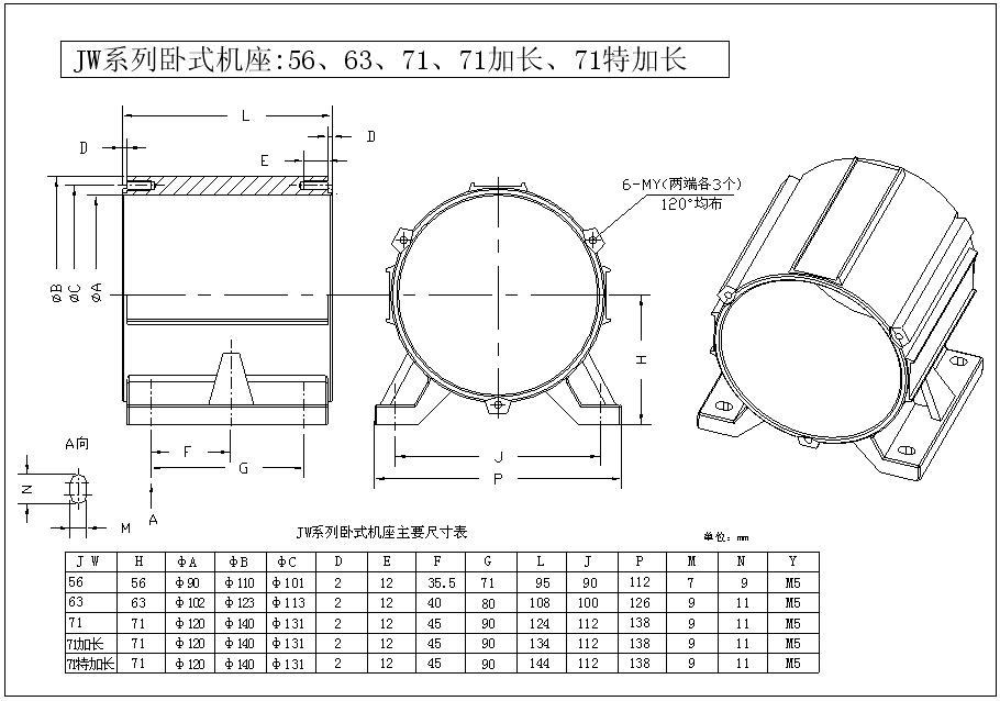 JW系列臥式機座:56、63、71、71加長、71特長 |