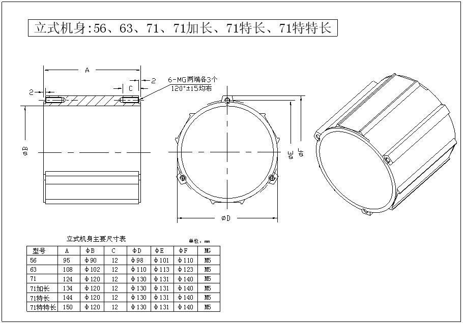立式機身:56、63、71、71加長、71特長、71特特長 |